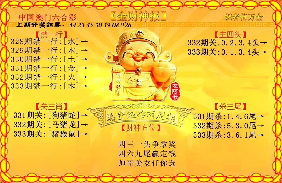330期:玄机〖:君王独宠一美人〗 预解:君王独宠一美人,独肖马羊兔虎牛鼠,吉美肖蛇羊鸡龙马兔。开马36 |