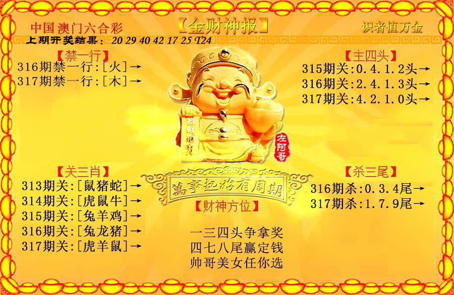 | 316期:内幕①肖+三中三开:马24准 内幕①肖:【马】 三中三:【17-40-29】 |
